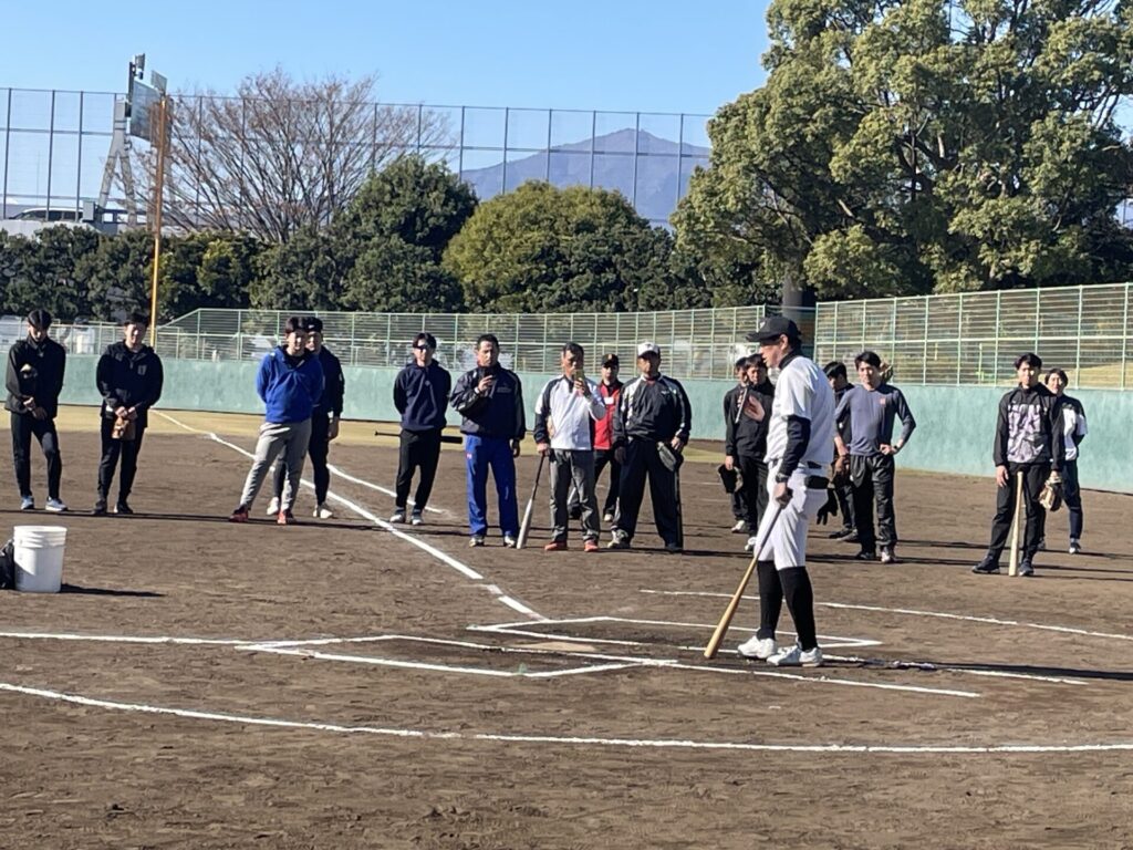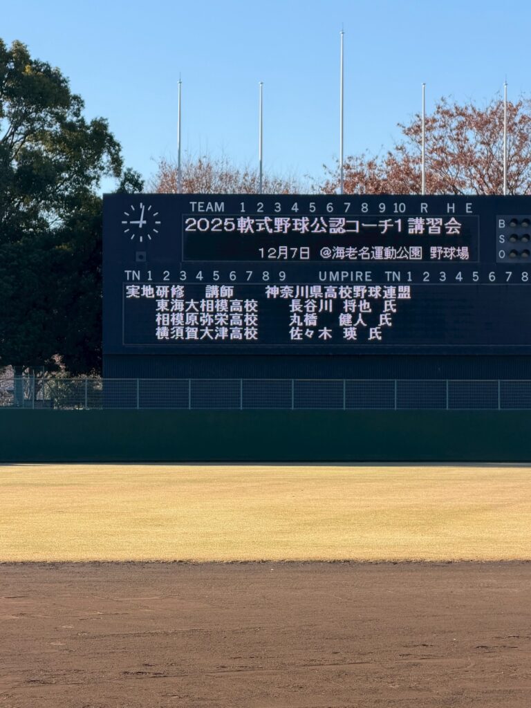 令和7年12月7日(日)に海老名運動公園野球場と会議室において、基礎実技(投手、打撃、守備、走塁)指導等を、本連盟所属の理事3名が講師を務めました。この研修会は、公認コーチ1の資格取得のために実施されているもので、学童~社会人野球の指導者に向けての講習会です。3名の理事が、自校で行っている練習や考えを実演しながら、実際に自分で実施してもらう講義を行いました。毎年、講師として本連盟の理事が参加させていただいているのですが、本連盟としては、野球についての技術指導もそうですが、野球人口の拡大のために共通認識を持ってもらう機会であるとも考えているため、先日行われた、野球であそぼうと同様に大事な、機会かと思っています。今回の最後の質疑応答の中でも、学童の野球チーム指導者や平日の学校後に小学生を預かる学童保育を仕事にしていらっしゃる方からの意見や要望などもありました。貴重な意見も多数いただきましたので、できる限りのことを考えて、実施できればと思います。